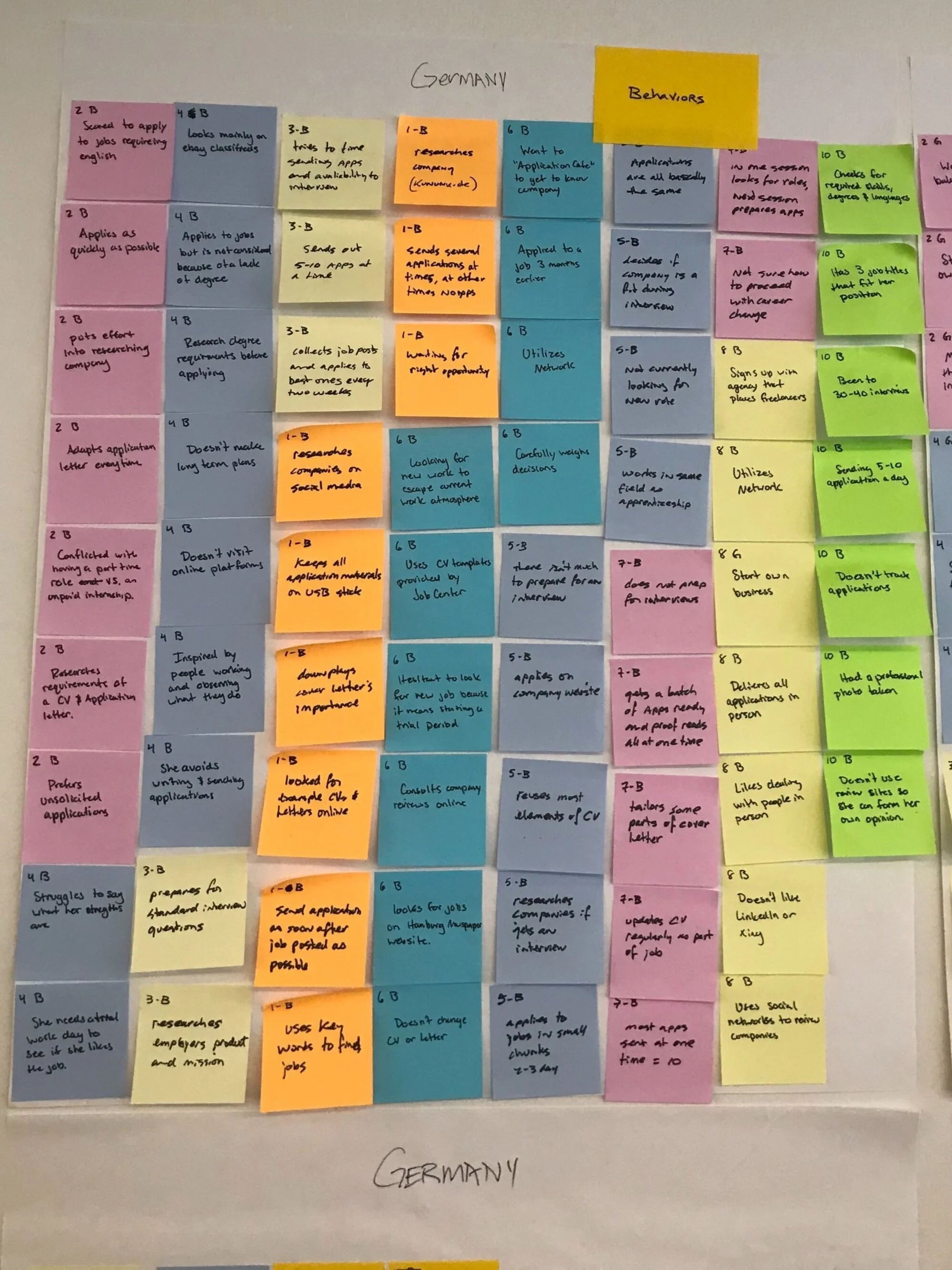 I packed my bags and headed to Europe to participate in home visits with a research partner. Over 5 weeks we conducted 24 home visits to see how people in Germany and France prepare their documents and search for jobs. Each interview lasted about 2 hours and focused on their current job search process, career goals, decision making, and high and low points of their job search.