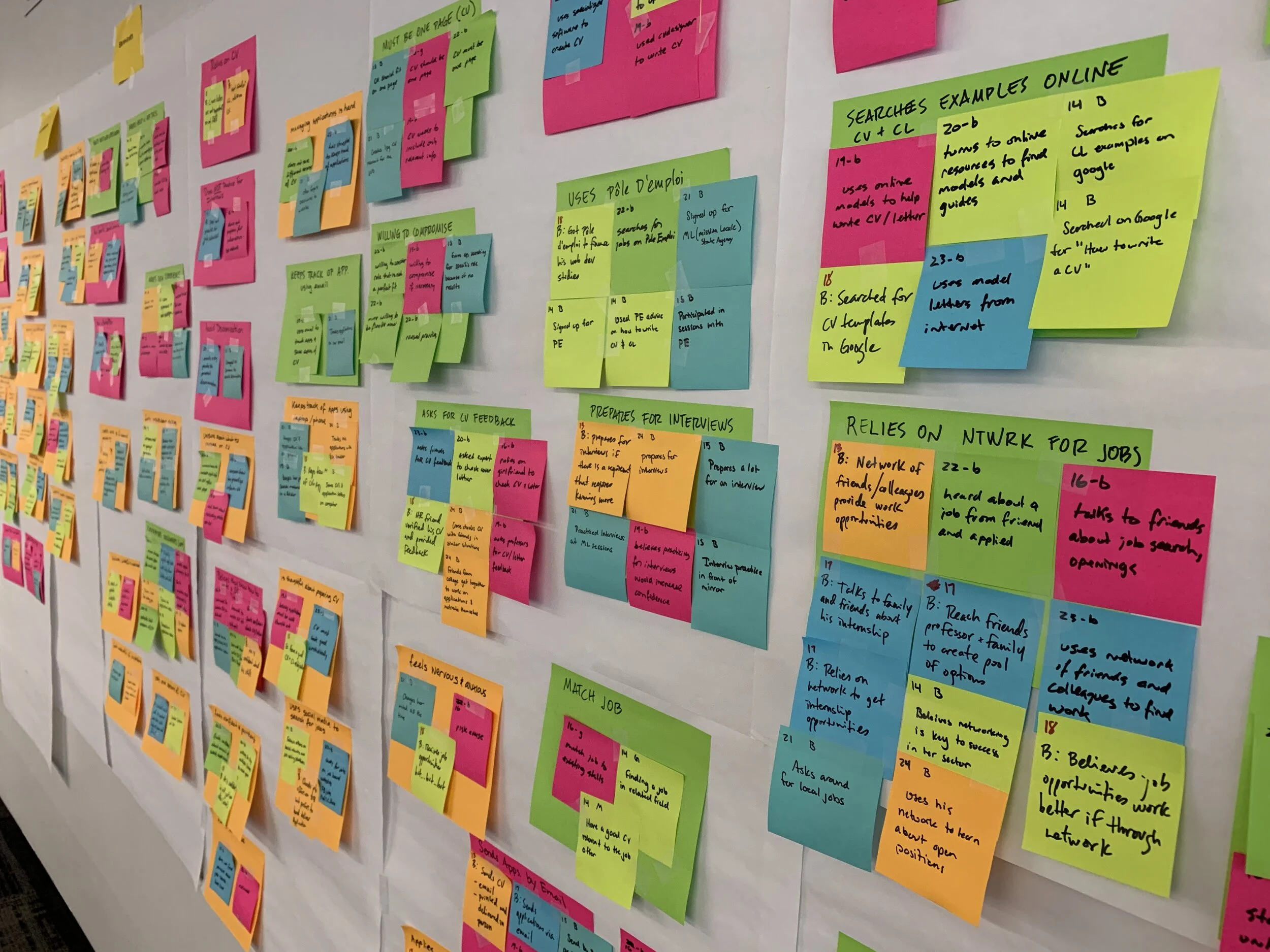 Next was to take those steps in their journeys and create an emotional service map. Finding evidence of their wants and needs, mental states and thoughts, and their actions and reactions we can better understand what job seekers do, and how they feel about it.